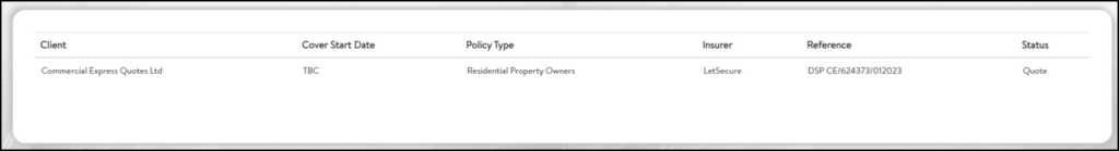 Or you can search for the quotation / policy in the system. Click on the quote / policy as shown in the example below.