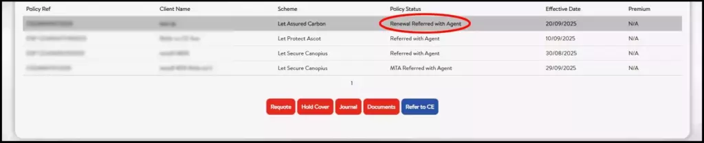 If we require additional information on a renewal, or when a renewal has been allocated to the broker, the status of the renewal will be Renewal Referred with Agent.